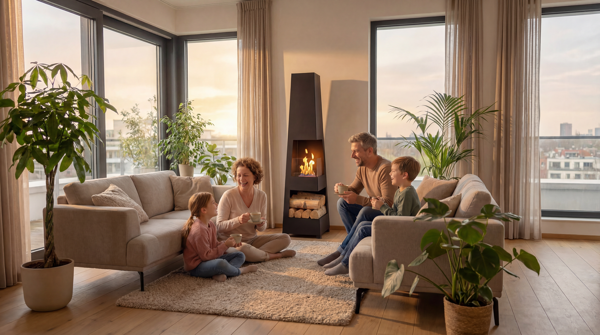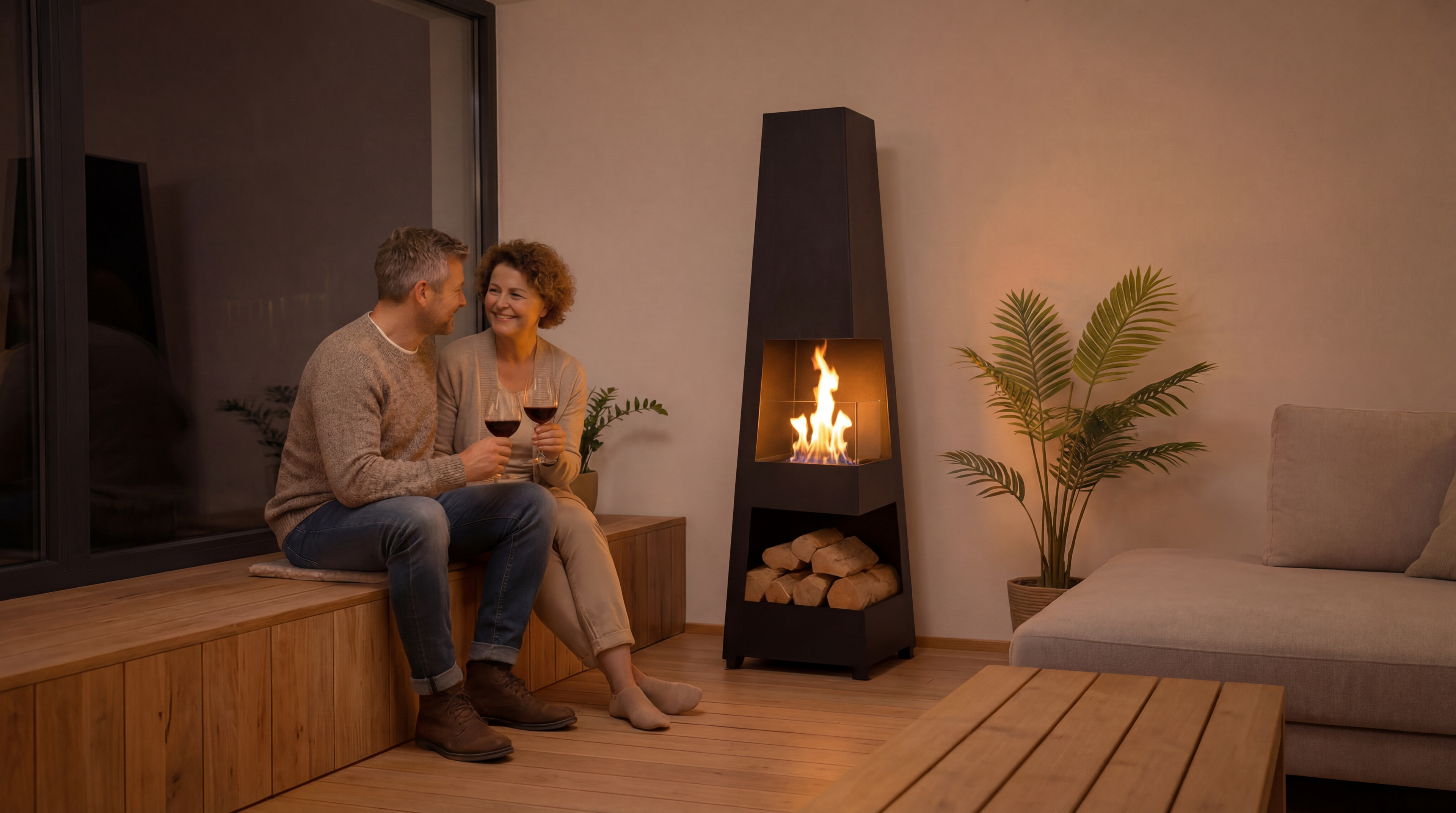 • Maximale Flexibilität: Ob als stilvoller Raumteiler, zentrales Highlight im Wohnzimmer oder gemütlicher Akzent im Wintergarten – unsere Standkamine können frei im Raum positioniert und bei Bedarf mühelos umgestellt werden.